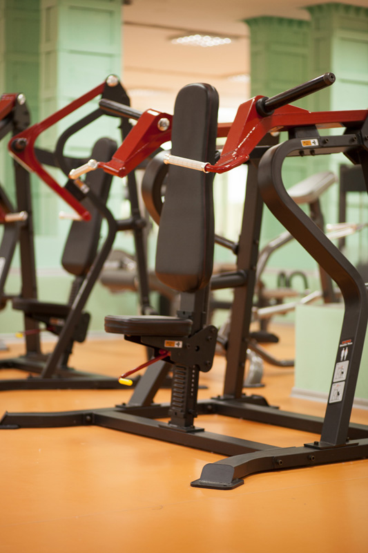 Тренажерна зала оснащена новітнім силовим обладнанням на всі групи м’язів і представлені найкращими тренажерами таких відомих брендів, як: Impulse ® та Panatta ® , яке спрямоване на більш важкий базовий тренінг.