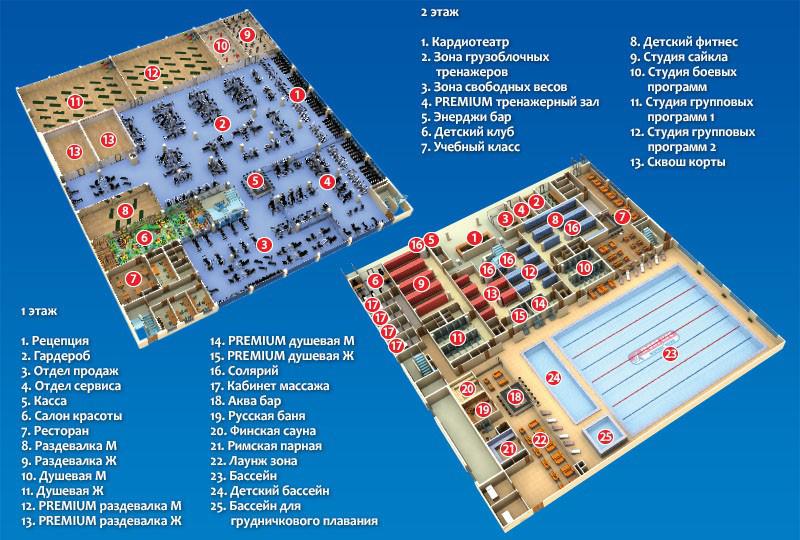 Новый клуб расположен на двух этажах отдельно стоящего здания. По безупречному качеству и количеству предоставляемых фитнес услуг в городе ему нет равных.