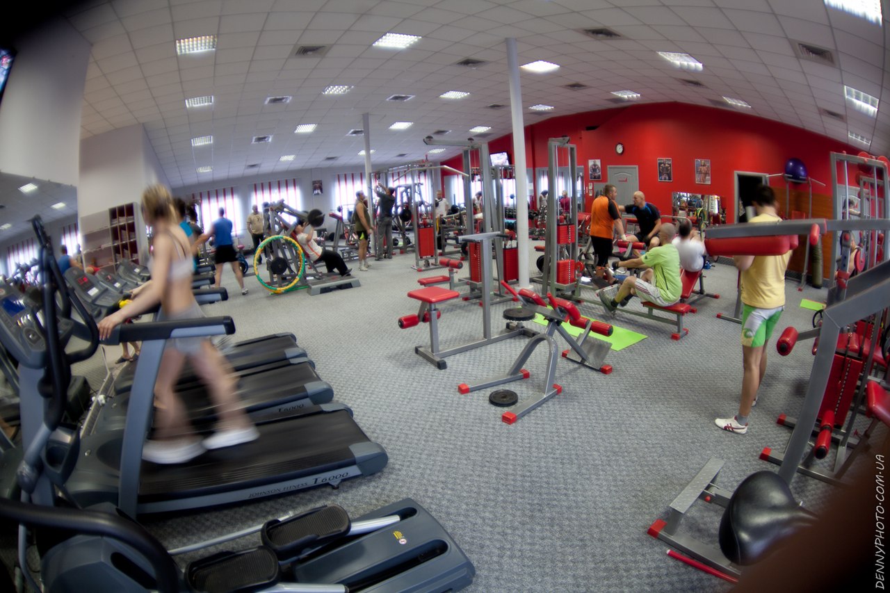 Современный тренажёрный зал, оборудованный линией силовых тренажёров VASIL GYM, как на блочных так и на свободных весах, гантельный ряд от 1 до 60 кг, кардиолинией Jonson (степы, орбитреки, велотренажёры, беговые дорожки), оборудованием для фитнеса Reebok.