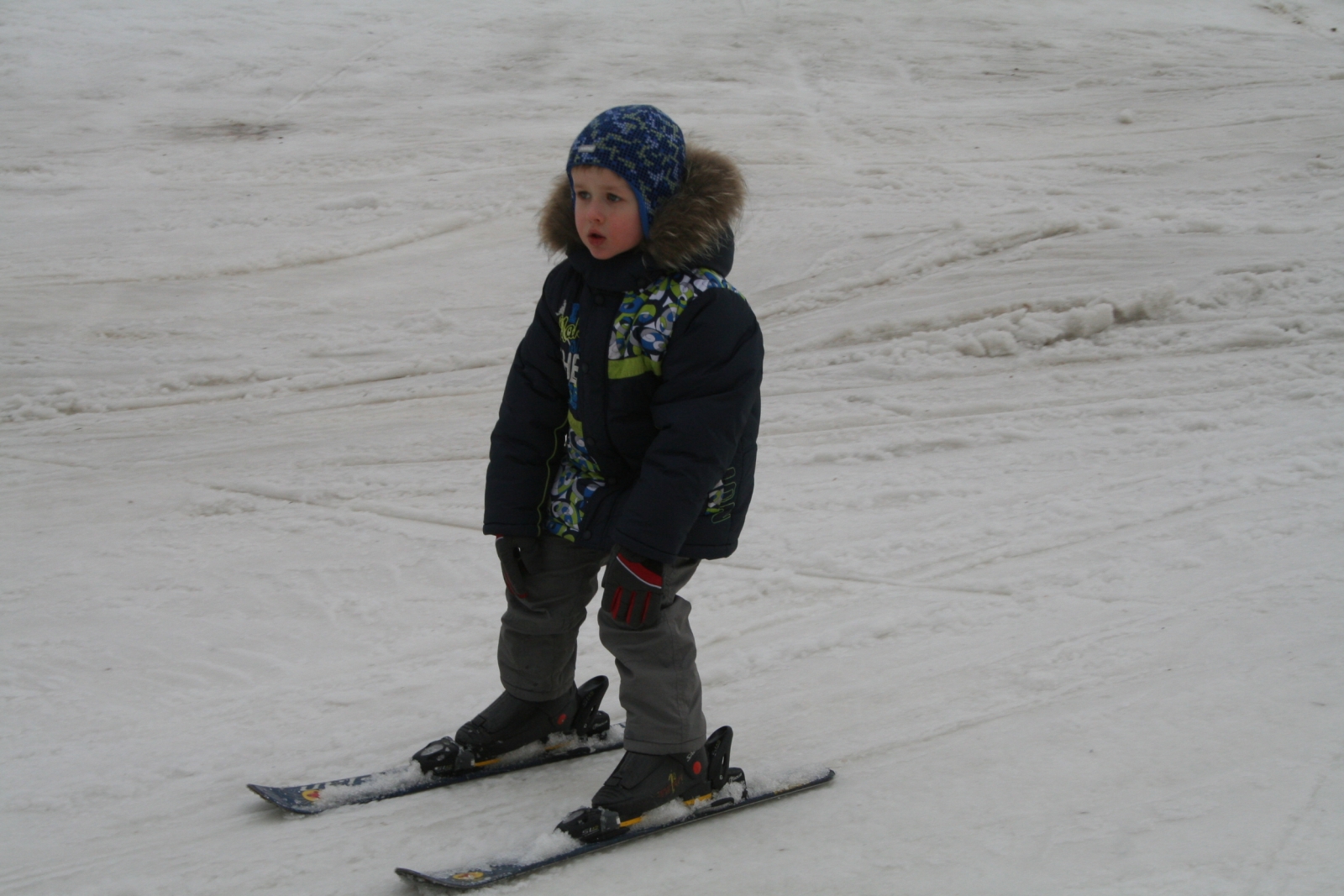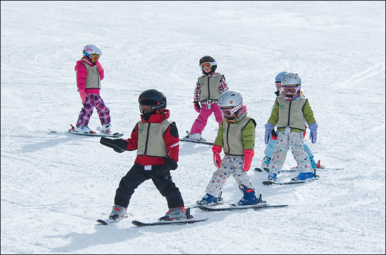 На пологом склоне учащийся последовательно осваивает прямой и косой спуски, затем технику выполнения поворотов. Попутно развивается умение контролировать скорость и выполнять экстренное торможение. После осваивается подъемник и делаются первые длинные спуски по "синей" трассе.