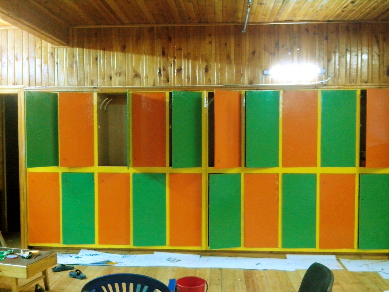 Специально-оборудованный зал для занятий боевыми искуствами, татами, боксерская груша, спортивный инвентарь, раздевалка со шкафчиками.